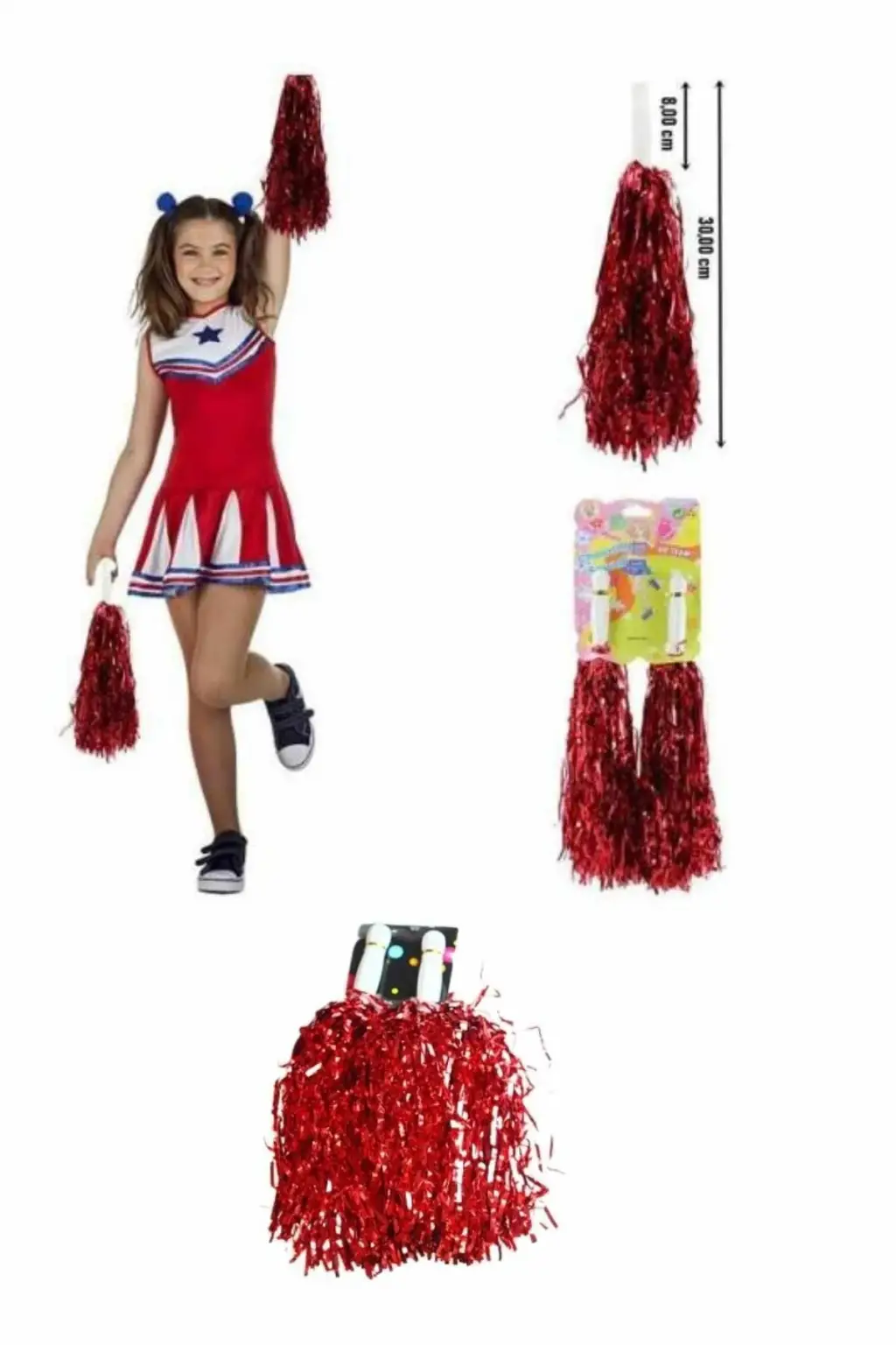 1 Çift Metalik Kırmızı Renkli Kutlama Ponponu 23 Nisan- 29 Ekim -19 Mayıs amigo ponponu. ..